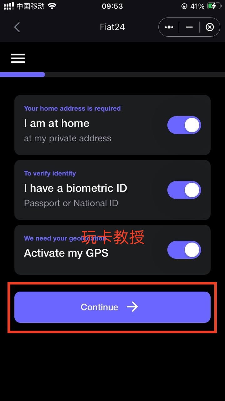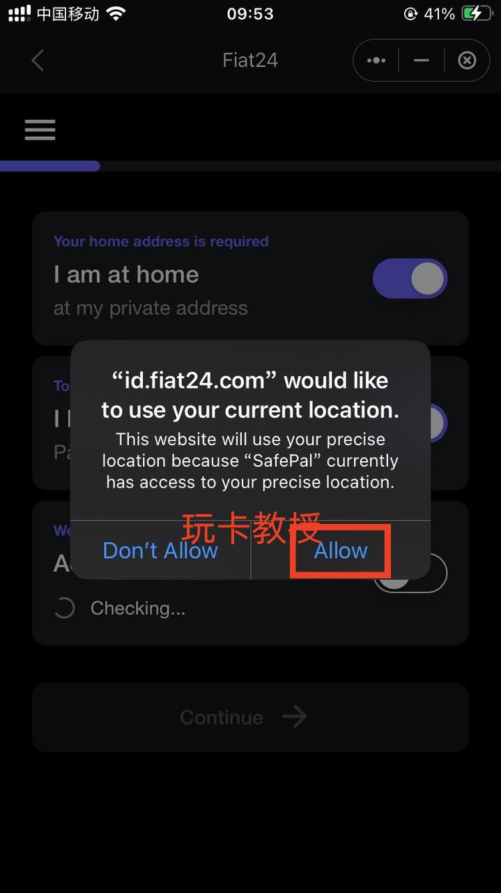 创建完成后,点击:去Fiat24注册,允许访问位置,身份验证:确认