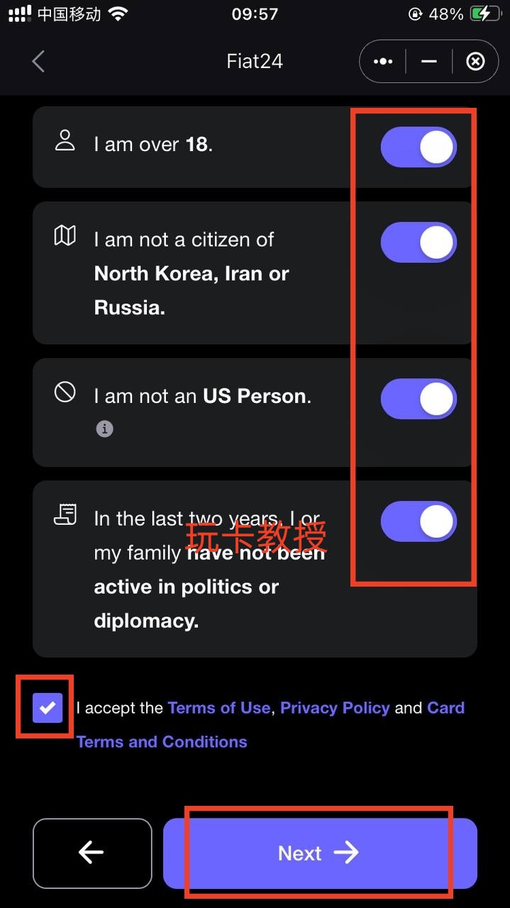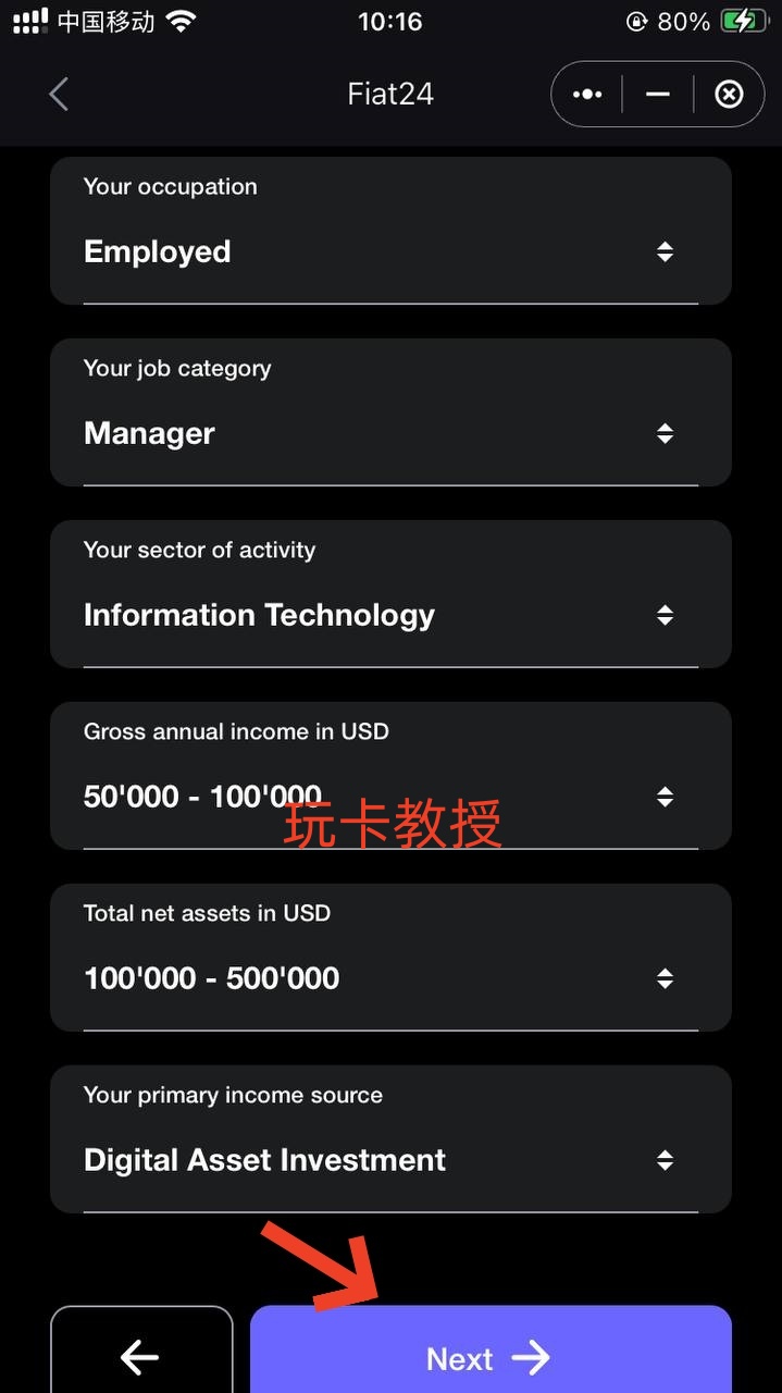 这里全部勾选上即可,填写工作,年收入,收入来源相关,点击:Next