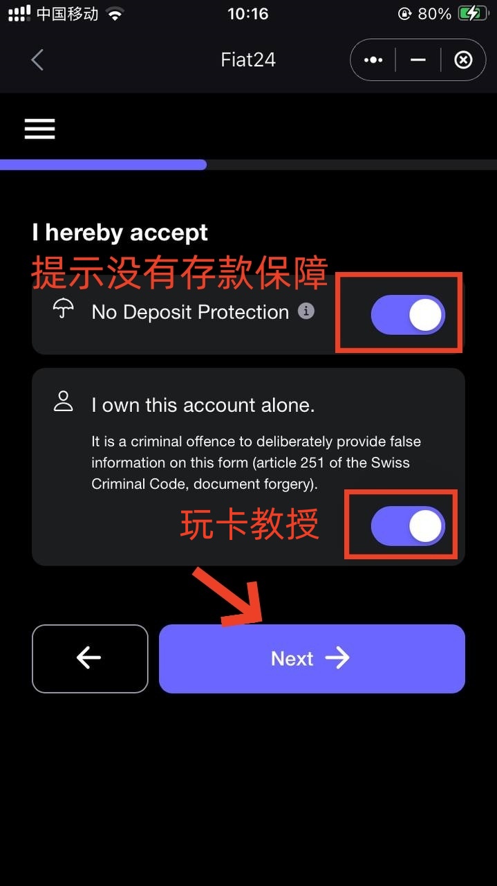 提示没有存款保障,我们勾选确认,填写接收通知的邮箱,确认填写的信息