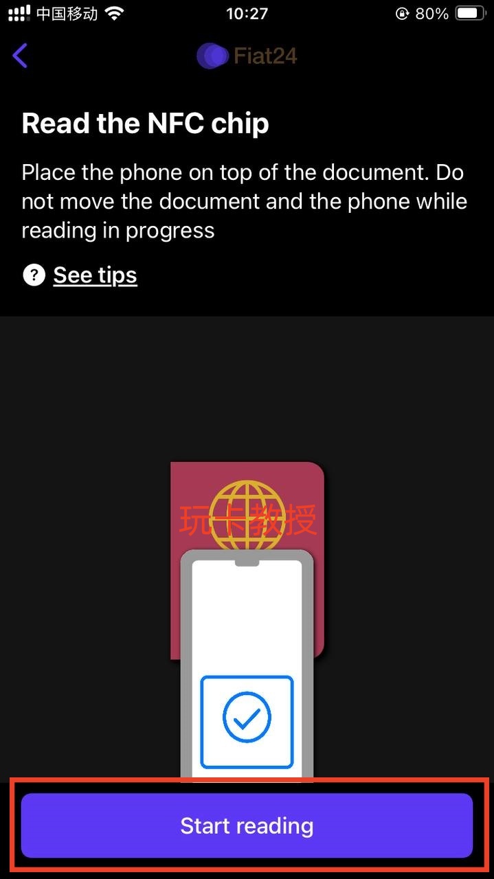 然后我们把护照放在手机背后NFC的位置,他会自动进行扫描